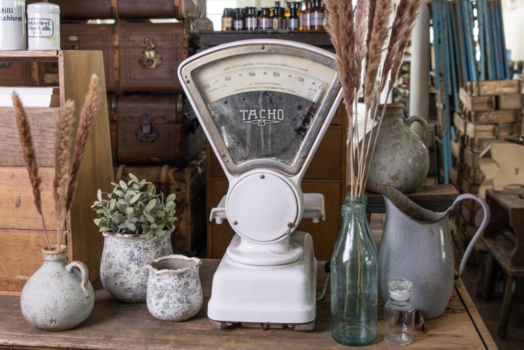 Ceramikę, lniane tekstylia, kosze wiklinowe i zegary w stylu retro.