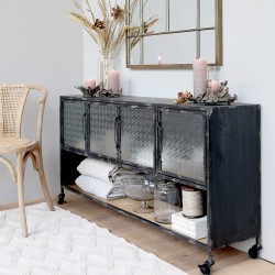 Dodaj wdzięku i funkcjonalności swojemu salonowi – pomoże Ci w tym konsola loft Chic Antique z szufladami i półkami.