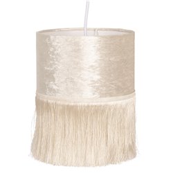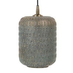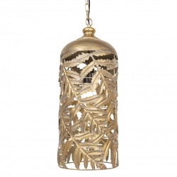 Wysoka, złota lampa od Clayre&Eef ma kształt tuby, zawieszona jest na łańcuchu i miejsce na jedną żarówkę.