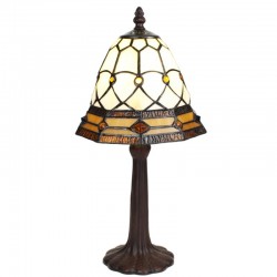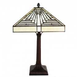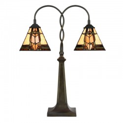 Witrażowa lampa stołowa Tiffany Clayre & Eef to kwintesencja elegancji i tradycji, gdzie każdy detal jest jakby rzeźbiony z myślą o wyjątkowym pięknie. Klosz lampy w klasycznym kształcie, otwartym ku dołowi, to prawdziwe arcydzieło geometrycznej precyzji i harmonii odcieni brązu i kremu.