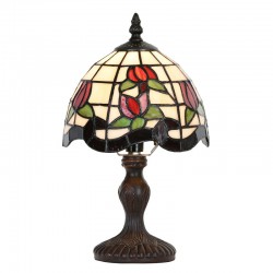 Lampka stołowa Tiffany Clayre & Eef to podróż w czasie do epoki elegancji i sztuki, gdzie klosz w kształcie klasycznej półkuli jest misternie ozdobiony wzorami z motywem zielonych i czerwonych akcentów. To nie tylko oświetlenie, lecz także wyraz ręcznej pracy artystycznej, który wprowadza do wnętrza niezwykły klimat i estetyczną doskonałość.
