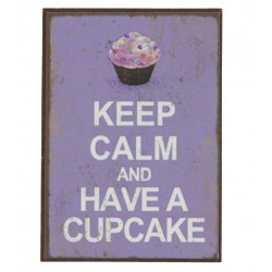 Cechujący się ciekawą kolorystyką magnes na lodówkę z napisem i grafiką wypiekanej babeczki. Mniam!
