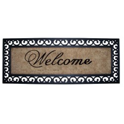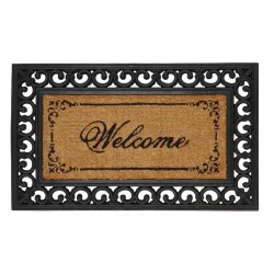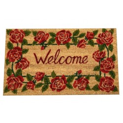 Śliczna wycieraczka kokosowa firmy Clayre & Eef z dużym motywem kwiatowym i napisem Welcome!