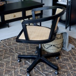 Krzesło Boho Czarne Grid Ash J-Line łączy drewnianą konstrukcję w matowej czerni z siedziskiem i oparciem z naturalnego splotu. Wyróżnia się geometryczną formą, lekkością i ponadczasową estetyką japandi. Idealne do jadalni, biura lub salonu — łączy minimalizm z ciepłem natury.