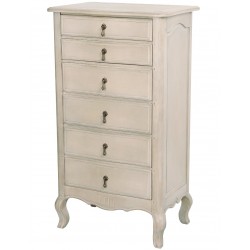 Wykonana z drewna kauczukowego komoda w stylu prowansalskim, z dwiema szufladami, na zgrabnych nóżkach.