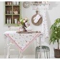 Stół w stylu prowansalskim idealny do kuchni lub jadalni o kremowej podstawie i bielonym blacie.
