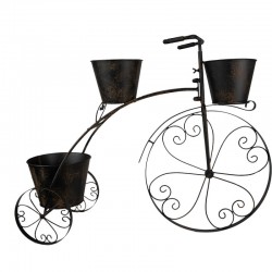 Czarny kwietnik w stylu industrialnym wykonano z metalu i wyposażono w miejsce na trzy donice z dowolnymi roślinami.