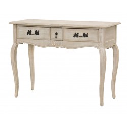 Konsola prowansalska szara Murani z półkami jest bardzo przydatna do przechowywania biżuterii, kosmetyków i innych niezbędnych rzeczy. Oferuje dużą powierzchnię roboczą.