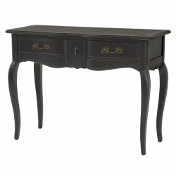Czarna konsola w stylu prowansalskim posiada wszystko co powinien mieć piękny mebel: solidną konstrukcję, niebanalny kolor i wyjątkowy kształt.