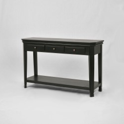 Czarna konsola prowansalska została zaprojektowana tak, aby spełnić wszystkie Twoje potrzeby. Posiada szufladę i dwie długie półki!