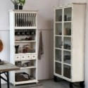Witryna Vintage Chic Antique A to stylowy mebel z drewna jodły, metalu i szkła, który łączy rustykalny urok z industrialnym charakterem. Czarno-brązowa forma z przeszklonymi drzwiami i delikatnym postarzeniem tworzy wyjątkowy klimat vintage. Idealna do ekspozycji dekoracji, naczyń lub książek w salonie i jadalni.