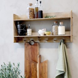 Organizer ścienny kuchenny Chic Antique to praktyczne rozwiązanie dla tych, którzy kochają porządek i piękne, naturalne wnętrza. Ten dekoracyjny dodatek łączy funkcję półek i wieszaka, idealnie wpisując się w estetykę kuchni skandynawskiej, rustykalnej i boho.