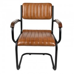 Brązowe krzesło w stylu retro z metalową podstawą oraz siedziskiem i oparciem wykonanym z miękkiej gąbki tapicerskiej to elegancka i wygodna propozycja do stylowych wnętrz. Jego klasyczna kolorystyka i solidna konstrukcja sprawiają, że doskonale wpisuje się na przykład w aranżacje vintage.