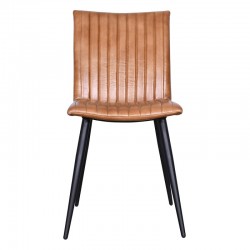Krzesło z miękkim siedziskiem w kolorze brązowym to idealne połączenie komfortu i stylu skandynawskiego. Jego ciepły odcień harmonizuje z naturalnymi wnętrzami, a czarne metalowe nogi dodają mu nowoczesnego charakteru. Taki design sprawia, że krzesło pasuje do każdego pomieszczenia.