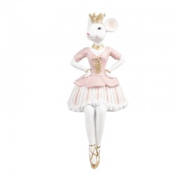 Dekoracyjna figurka baletnicy Clayre & Eef w beżowej sukience ozdobionej pastelowymi słodkościami. Uroczy dodatek w stylu prowansalskim i shabby chic, który wprowadzi lekkość i wdzięk do salonu, sypialni czy pokoju dziewczęcego. Idealna na prezent dla miłośników tańca i subtelnych dekoracji.