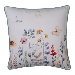 Z jednej strony poszewki widnieje motyw zielonej dyni, otoczony delikatnymi, białymi kwiatami, co nadaje jej przytulny i naturalny charakter. Kompozycja ta tworzy sielski, ciepły nastrój, kojarzący się z sezonem zbiorów i domowym ciepłem.