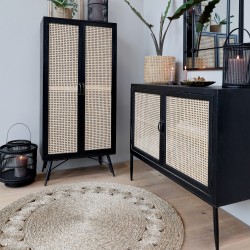 Pleciony dywanik w modnej czarno‑beżowej tonacji. Wykonany z naturalnych włókien, odporny na codzienne użytkowanie i łatwy w czyszczeniu. Wyrazista faktura wnosi ciepło i charakter do salonu, przedpokoju lub pod stolik. Zwijany dla wygodnego przechowywania.