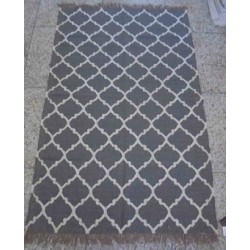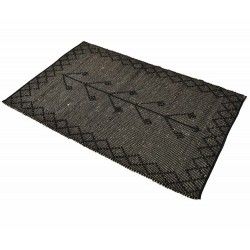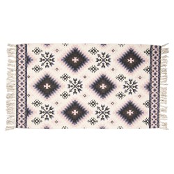 Tkany dywanik w kontrastowych odcieniach czerni i beżu z geometrycznym, etnicznym wzorem i dekoracyjnymi frędzlami. Wykonany z naturalnych włókien, wnosi do wnętrza ciepło i teksturę w stylu boho. Świetny do przedpokoju, przy kanapie lub pod stolikiem — stylowy detal, który odświeży każde pomieszczenie.