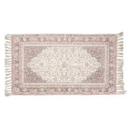 Elegancki dywanik w stylu perskim o stonowanej palecie beżu, pudrowego różu i szarości. Subtelny ornament z centralnym medalionem i delikatnymi frędzlami nadaje wnętrzu przytulnego, klasycznego charakteru. Idealny do salonu, sypialni czy przedpokoju — dodaje ciepła i wyrafinowania bez przytłaczania przestrzeni.