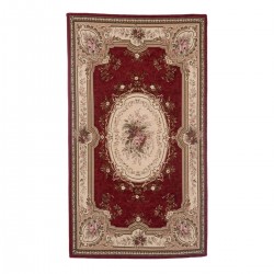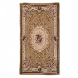 Elegancki dywan w stylu francuskim Aubusson, ozdobiony subtelnym kwiatowym medalionem w centrum. Pastelowa paleta różu, kremu i beżu oraz misterny ornament wprowadzają do wnętrza ponadczasową elegancję. Idealny do salonu, sypialni czy gabinetu — nadaje przestrzeni ciepły, wyrafinowany charakter i podkreśla klasyczny wystrój.
