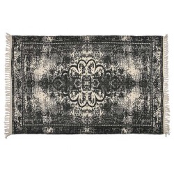 Dywan w stylu vintage o kontrastowym, czarno‑kremowym wzorze i dekoracyjnych frędzlach. Nadaje wnętrzu charakteru i przytulności, świetny do salonu lub sypialni. Neutralna kolorystyka łatwo komponuje się z różnymi aranżacjami, a subtelne postarzenie dodaje mu eleganckiego, ponadczasowego uroku.