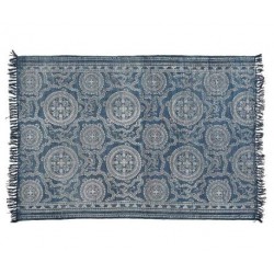 Dekoracyjny dywanik w orientalnym stylu z ozdobnymi frędzlami. Subtelna paleta niebieskiego, kremu i rdzawych akcentów tworzy elegancki, ciepły klimat. Idealny jako dodatek do salonu, sypialni czy przedpokoju — ożywia wnętrze i podkreśla styl aranżacji. Trwały wzór i precyzyjne wykończenie przyciągają wzrok.