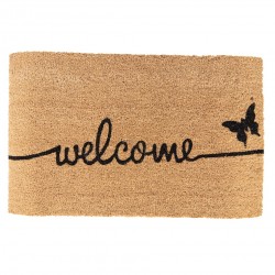 Prostokątna, kokosowa wycieraczka z czarnym napisem - idealna do ułożenia tuż przed wejściem do każdego domu i mieszkania! Produkt ten polecają nasi zadowoleni klienci!