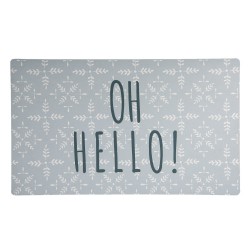 Stylowa i praktyczna mata podłogowa z wyrazistym i dużym napisem "OH HELLO".