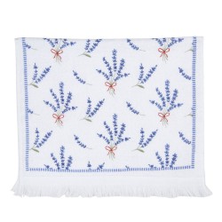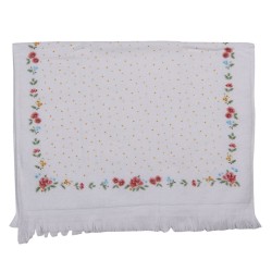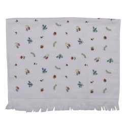 Uroczy ręcznik do rąk w stylu marynistycznym. Ozdobiony motywem trzech ryb i delikatnymi frędzlami. Idealny do łazienki nad morzem, domu w stylu coastal albo do kuchni w bieli. Wykonany z miękkiej bawełny. Praktyczny i dekoracyjny.