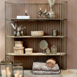 Regał loft Vence Chic Antique to połączenie industrialnej elegancji z rustykalnym urokiem. Jego trzy drewniane półki oferują nie tylko funkcjonalne miejsce do przechowywania, ale także stanowią piękną scenografię dla eksponowanych przedmiotów.