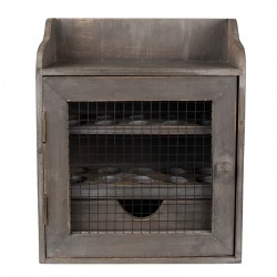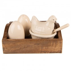 Szafeczka na jajka w kolorze bieli z brązowymi elementami i uroczą dekoracją w kształcie serduszka.