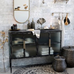Metalowa komoda industrialna czarna J-Line to doskonały sposób do wprowadzeniu odrobiny funkcjonalności dzięki licznym i sprytnym schowkom.