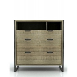 Wysoka komoda loftowa z półkami i szufladami to bezdyskusyjnie jeden z najlepszych mebli doskonałych do ekspozycji dekoracji i przechowywania tego co w domu najcenniejsze.