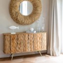 Przeszklona komoda wykonana z drewna z recyklingu. Prosimy pamiętać, że wszystkie meble Grimaud są wyjątkowe i nie ma dwóch takich samych. Oznacza to, że mogą nieco różnić się kształtem, rozmiarem i rodzajem drewna.