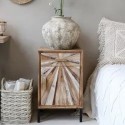 Szafka z Drewna z Recyklingu Chic Antique to wyjątkowy mebel, który przyciąga wzrok niepowtarzalnym wzorem i naturalnym wykończeniem. Ten oryginalny stolik nocny lub szafka pomocnicza to kwintesencja stylu rustykalnego i boho z nutą industrialnego pazura.