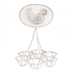 Szafeczka na jajka w kolorze bieli z brązowymi elementami i uroczą dekoracją w kształcie serduszka.