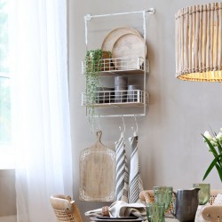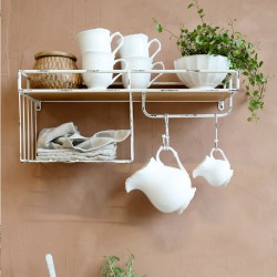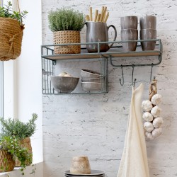 Organizer ścienny kuchenny Chic Antique to praktyczne rozwiązanie dla tych, którzy kochają porządek i piękne, naturalne wnętrza. Ten dekoracyjny dodatek łączy funkcję półek i wieszaka, idealnie wpisując się w estetykę kuchni skandynawskiej, rustykalnej i boho.