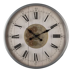 Zegar ścienny Belldeco Rustic ma średnicę 76 cm i grubość 3 cm. Jego konstrukcja z metalu sprawia, że jest to solidny i trwały model.