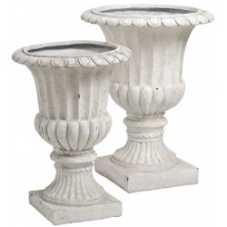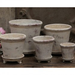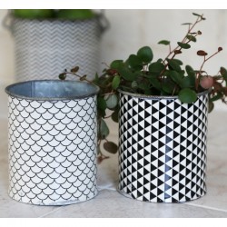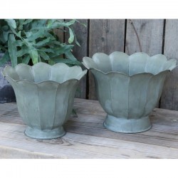 Dwie metalowe osłonki od duńskiej marki Chic Antique w kolorze szarym. Perfekcyjne na okrągłe donice z kwiatami.