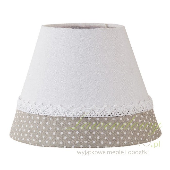 Biało-szary abażur prowansalski firmy Clayre & Eef z ozdobną koronką.