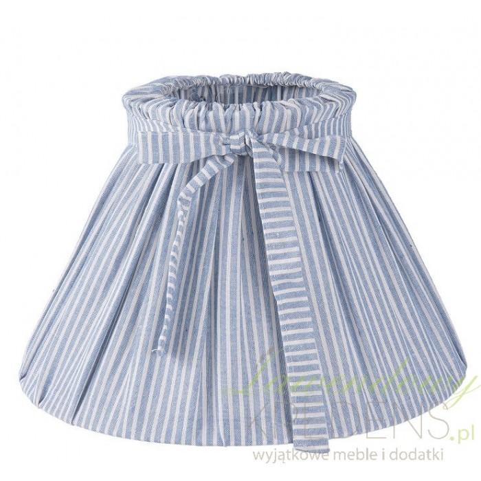 Abażur prowansalski wykonany jest z wysokiej jakości bawełny. Abażur w paski ma śliczny niebiesko-biały kolor i ozdobną kokardę u góry. Jest delikatnie marszczony, co dodaje mu niesamowitego uroku. Abażury w stylu prowansalskim to stworzenie wspaniałego francuskiego klimatu u siebie w domu.