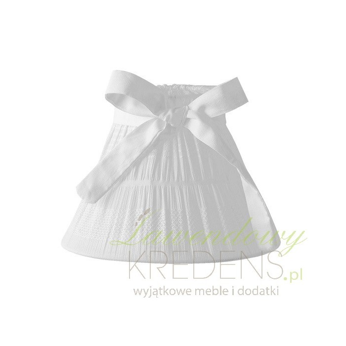 Abażur z kokardką to cudowna dekoracja salonu. Abażur Shabby Chic ma biały kolor i marszczoną fakturę. Biały abażur wykonany jest z bawełny i jest niezwykle uroczy. Może być fenomenalnym pomysłem na przepiękny prezent.