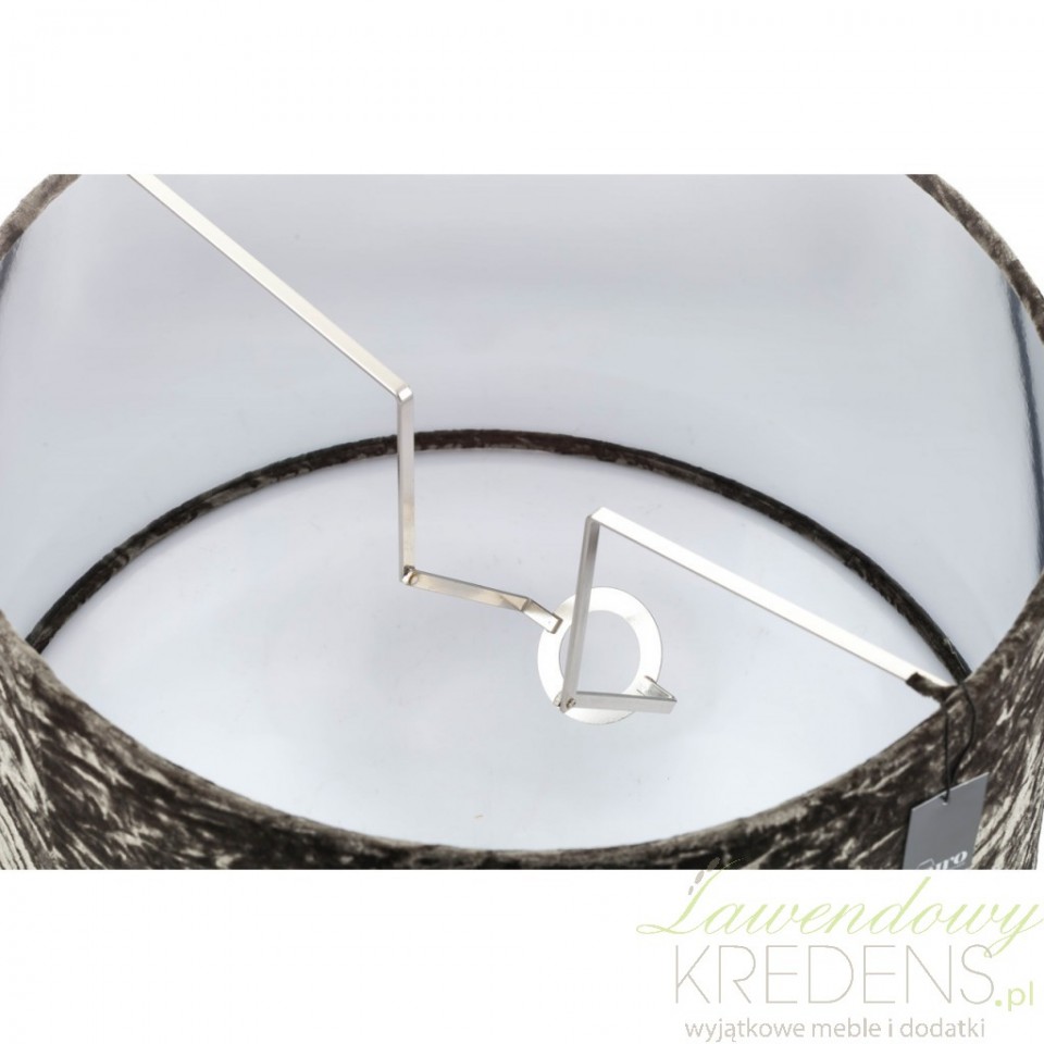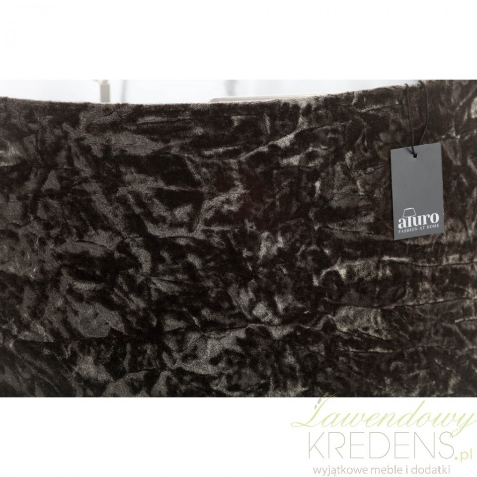 Abażur z aksamitu o oryginalnej "pognięcionej" strukturze pięknie wygląda w połączenu z metalowymi nogami w eleganckim stylu.
