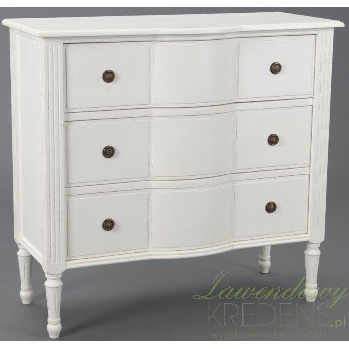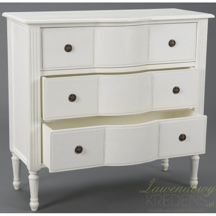 Zgrabnie wyglądająca, ale także pojemna komoda w stylu prowansalskim z trzema szufladami. Prezentuje się nienagannie!