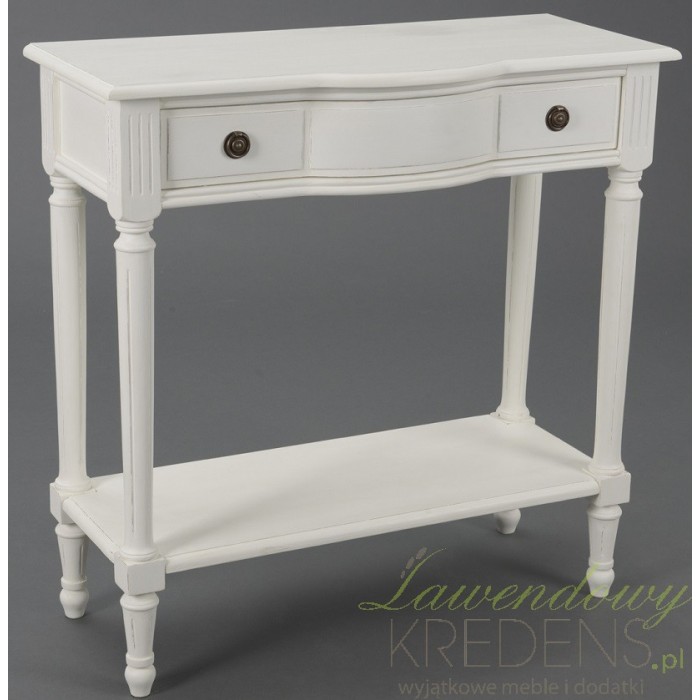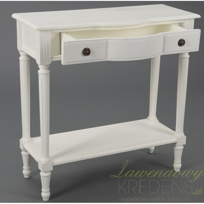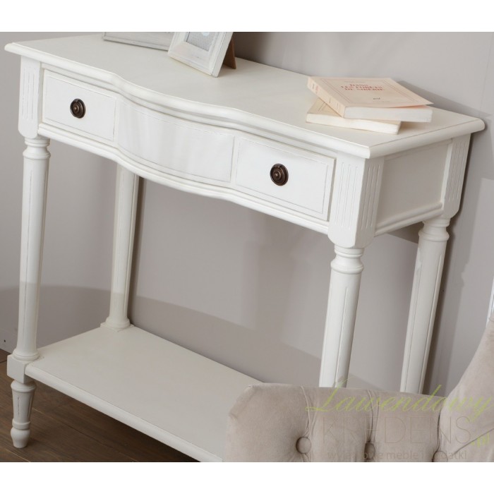 Biała konsola w stylu prowansalskim z kolekcji Adele z dużą szufladą i półką na dole!
