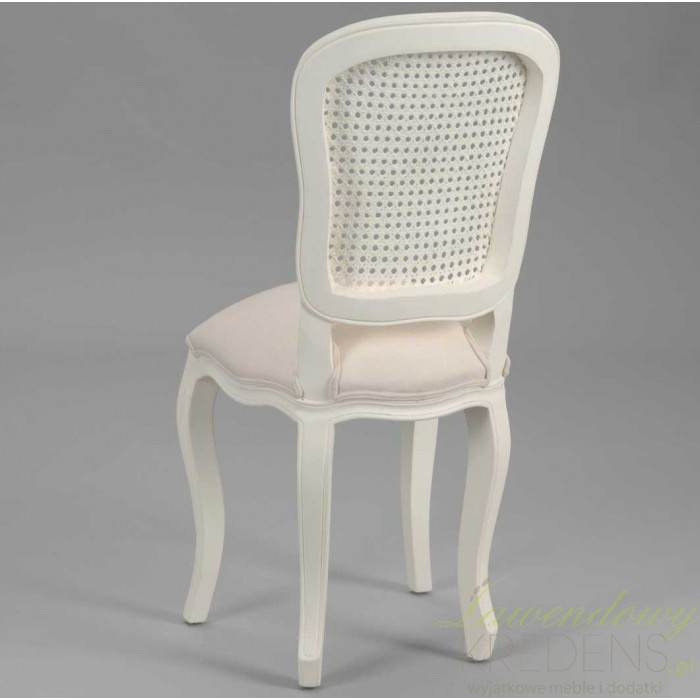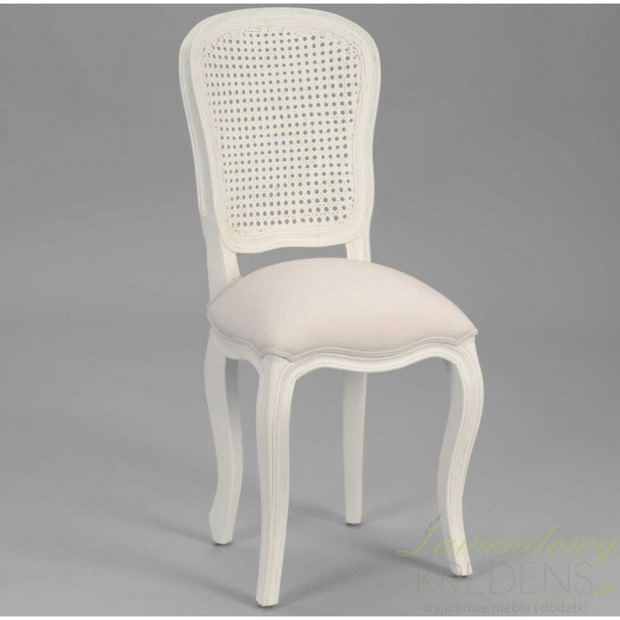 Krzesło prowansalskie z linii Crema zapewnia wygodne siedzenie w stylowym i smukłym designie do każdego, eleganckiego domu. Krzesło ma ażurowe oparcie i siedzisko wyściełane aksamitną tkaniną w odcieniu jasnego beżu. Wygięte nogi zapewniają trwałe podparcie i dodają krzesłu odrobiny stylu glamour. Dodaj krzesła w stylu prowansalskim do swojego salonu, sypialni lub biura. Meble prowansalskie są oferowane w różnych kolorach tapicerki, wybierz te, które najlepiej pasują do Twojego domu.