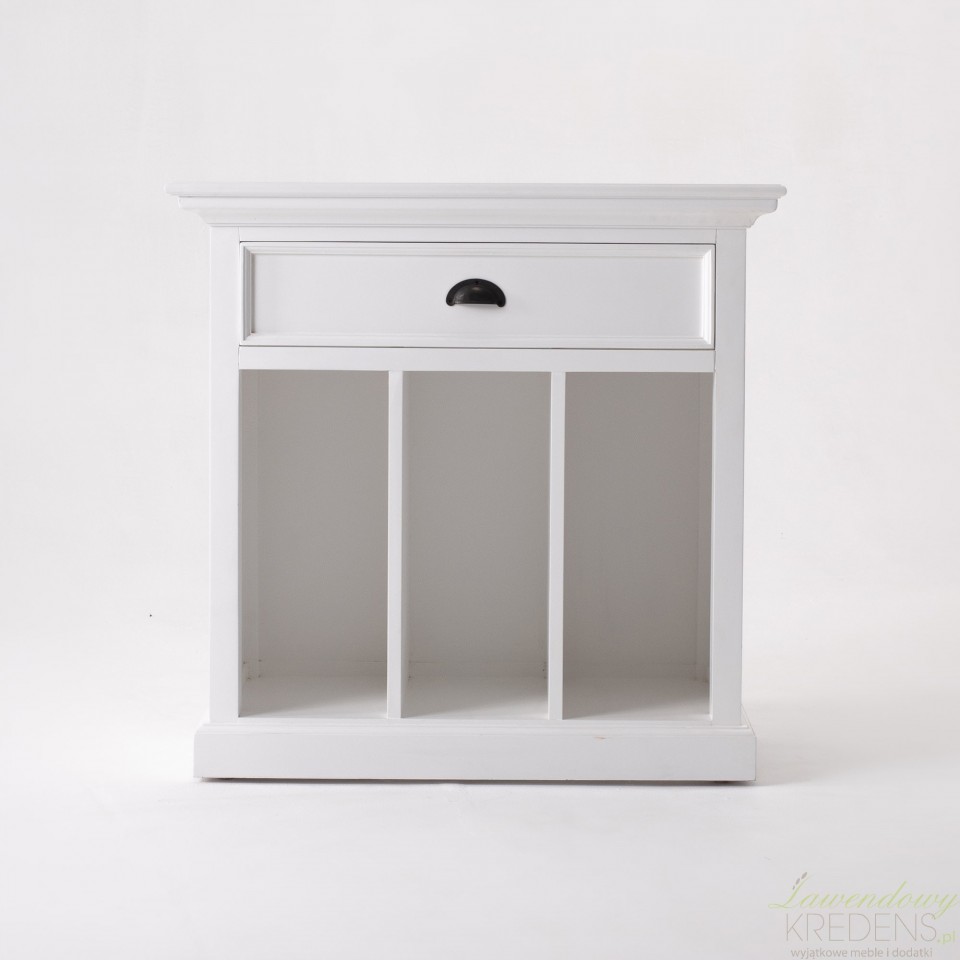 Elegancka i klasyczna szafka w stylu prowansalskim, to biały mebel wyposażony w dużą szufladę oraz pionowo przegrodzone półki. Dzięki otwartej przestrzeni pozwoli Ci wyeksponować warte pokazania przedmioty. Szafki prowansalskie z kolekcji Lumi sa uwielbiane ze względu na prostą formę i funkcjonalność. Meble prowansalskie Lumi - postaw na jakość i styl.
