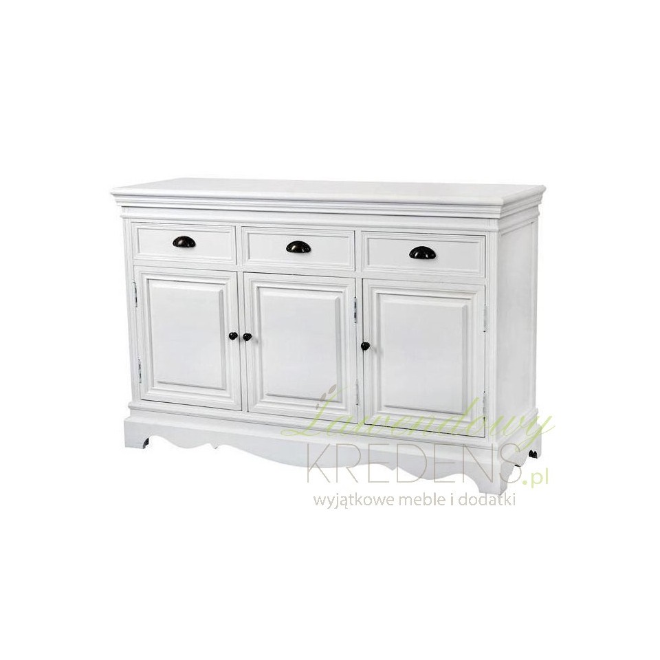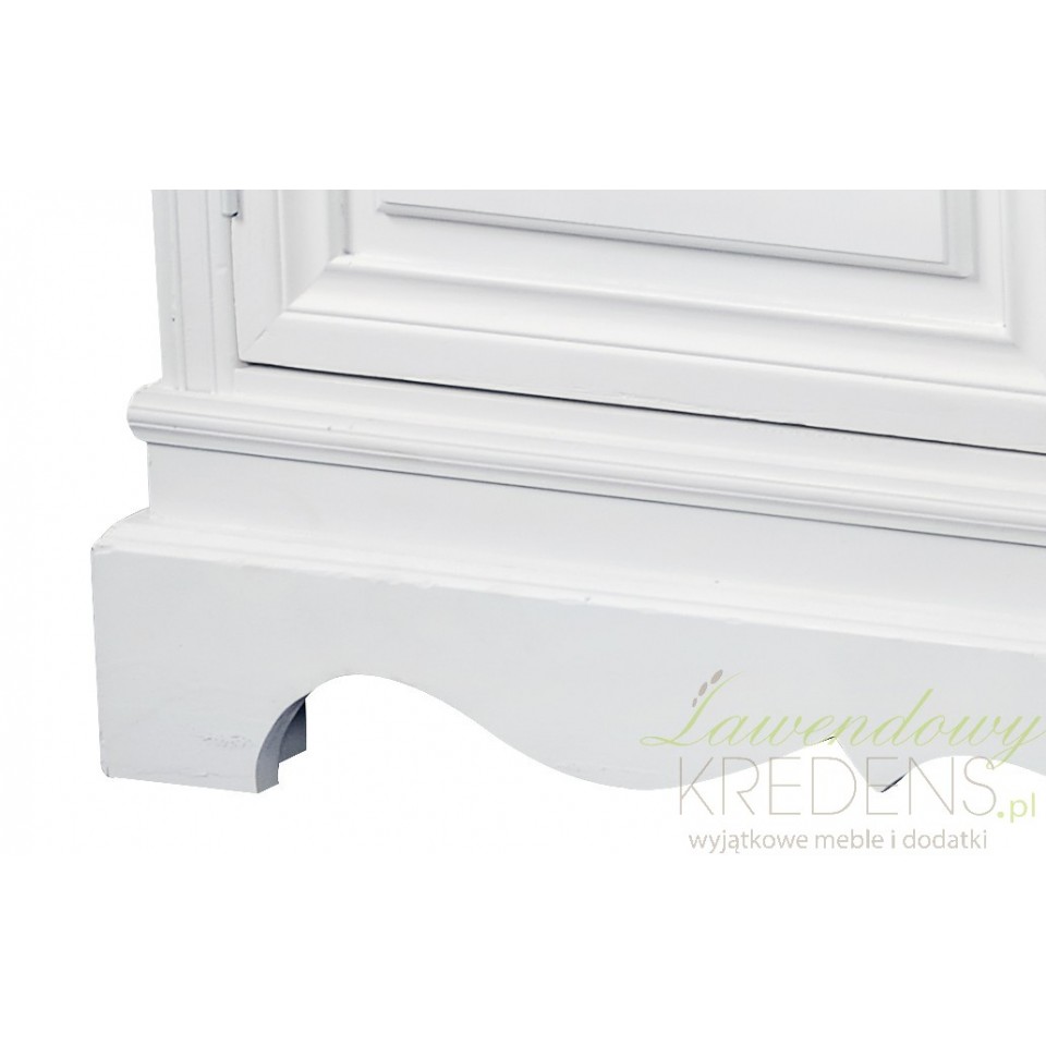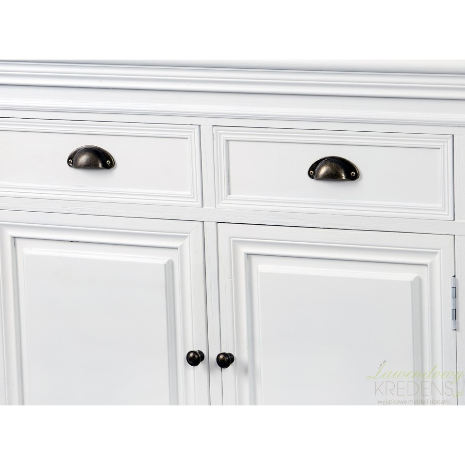 Szerokie komody to meble prowansalskie, które mogą znaleźć zastosowanie w prawie każdym pomieszczeniu w domu. Mogą zostać schowane do nich zarówno ubrania z bielizną jak i zastawa stołowa i sztućce. Tuż pod blatem komód najdują się szuflady z metalowymi uchwytami, a pod nimi znajdują się półki ukryte za drzwiczkami. Komody mają biały, matowy kolor z bardzo delikatnymi przetarciami na krawędziach.