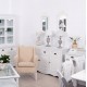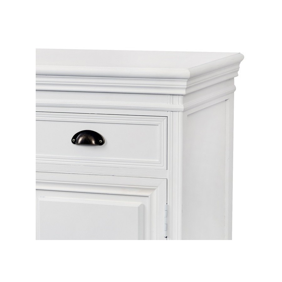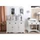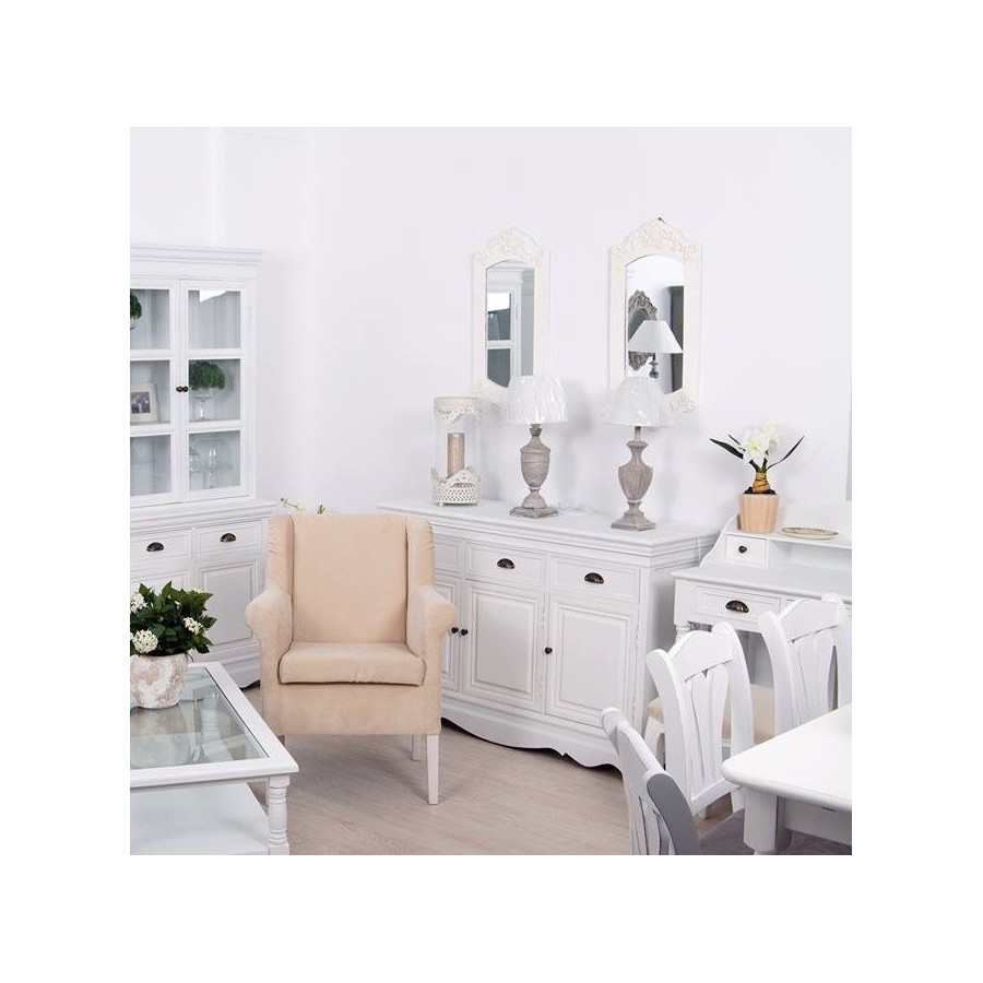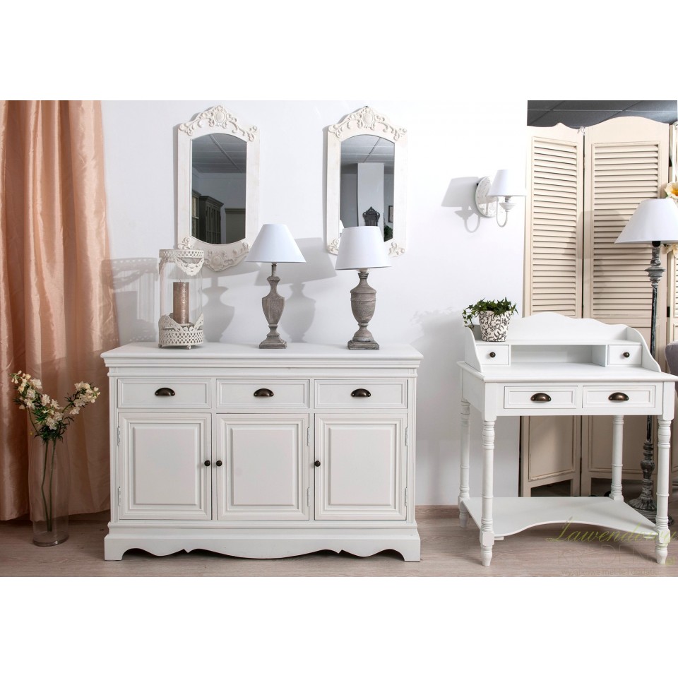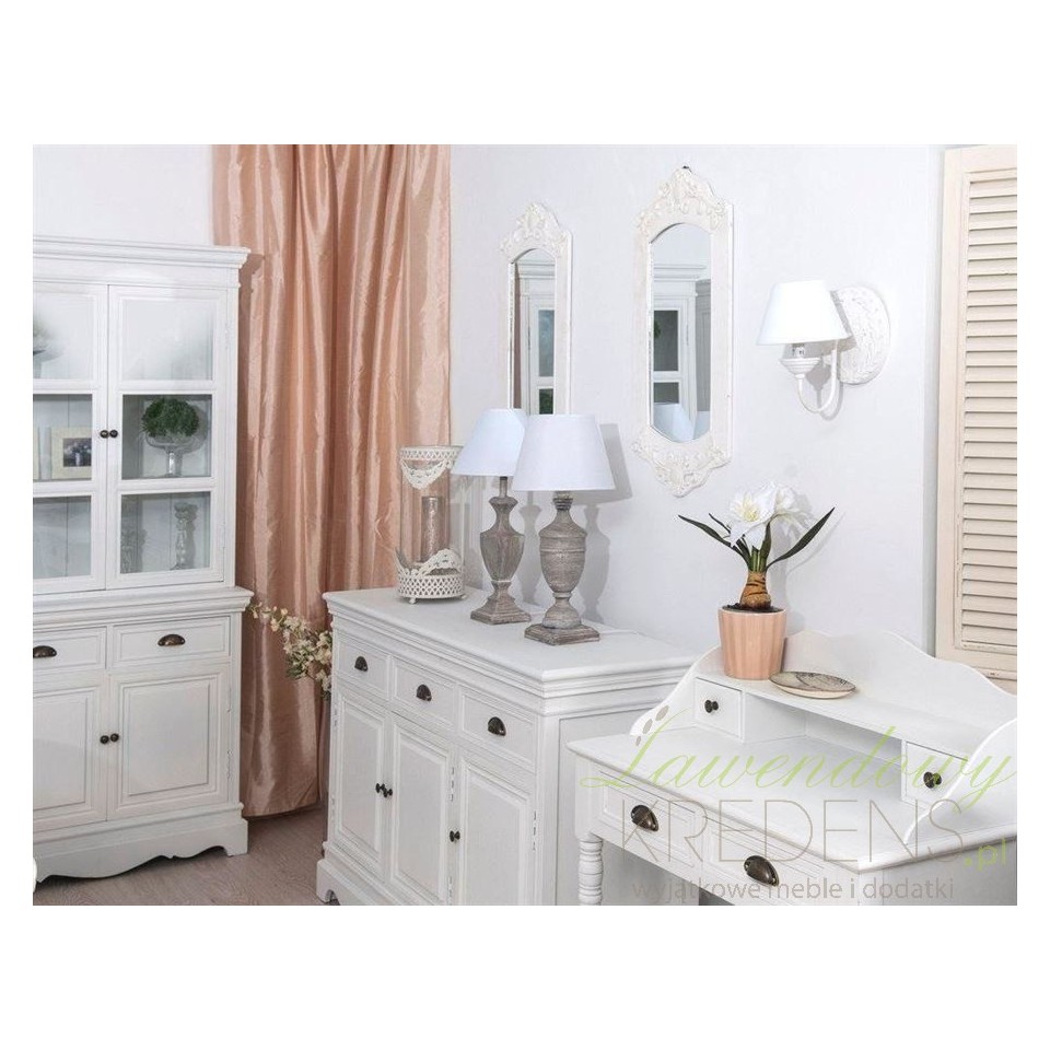 Szerokie komody to meble prowansalskie, które mogą znaleźć zastosowanie w prawie każdym pomieszczeniu w domu. Mogą zostać schowane do nich zarówno ubrania z bielizną jak i zastawa stołowa i sztućce. Tuż pod blatem komód najdują się szuflady z metalowymi uchwytami, a pod nimi znajdują się półki ukryte za drzwiczkami. Komody mają biały, matowy kolor z bardzo delikatnymi przetarciami na krawędziach.