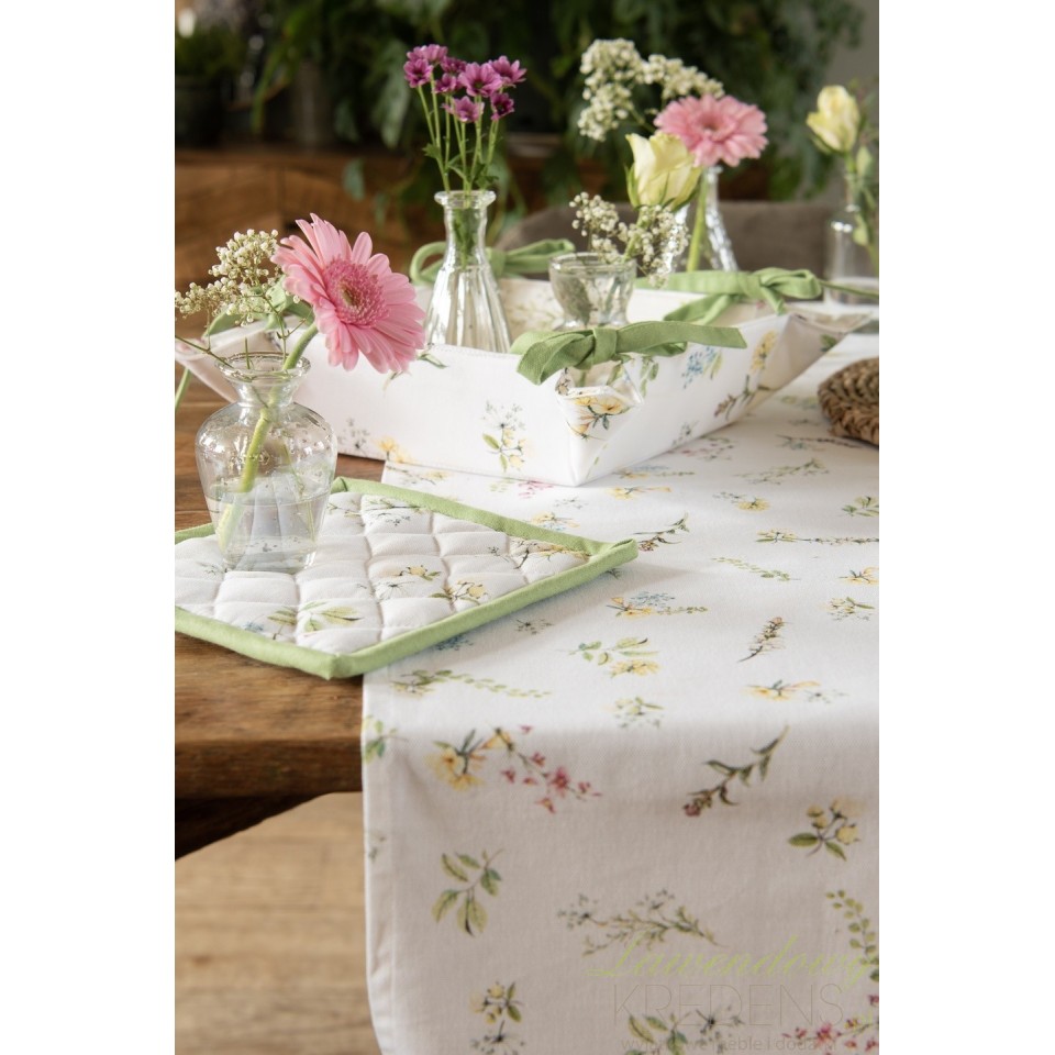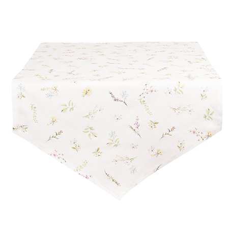 Ta piękna serweta to bawełniany bieżnik na stół, który oferujemy w wielu wzorach. Prezentowany bieżnik zdobi wzór w drobne i kolorowe gałązki kwiatowe. Chcesz by Twój stół był pięknie udekorowany na codzień? Wybierz bawełniane bieżniki od holenderskiego producenta Clayre&Eef!